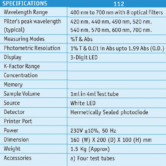 | RESOLUTION | 1%T,0.001 Abs upto 1.99Abs |
